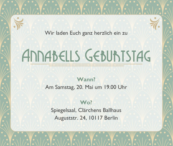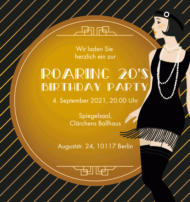 Für die Plattform eventkingdom, über die Einladungen zu Events und privaten Veranstaltungen online verschickt werden können, gestaltete ich eine Reihe von Karten im Stil der 20er-Jahre, manche davon auch animiert.
